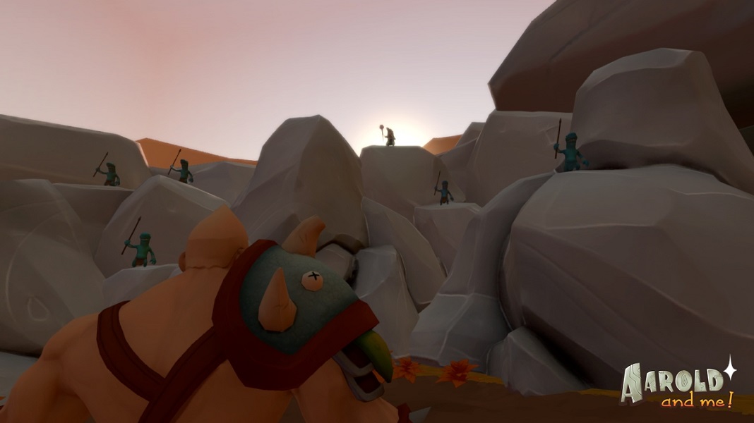 In Aarold and me!, you play with Aarold a former hero, he has done every challenges he could find, he is really powerful but for now, he just wants to rest in his village with his friends. One day, he receives a new mission and you, you will have to control him but this mission is too trivial. He will regularly challenge you to make his journey more interesting.