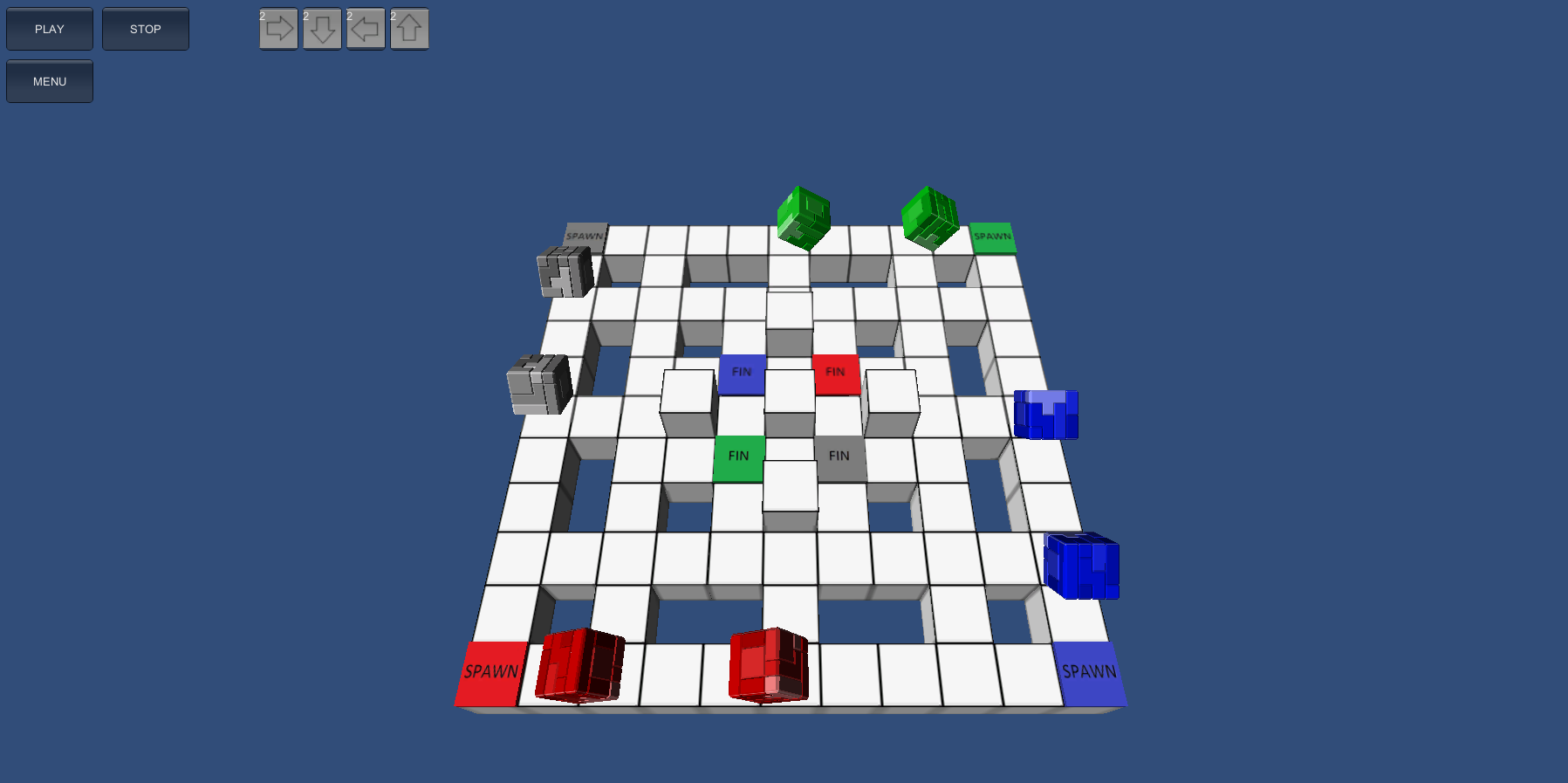 In RUSH, you have to resolve puzzle using arrows and special tiles to lead cubes in their destinations. The cubes will move on their own and you will just have to put tiles to affect their directions. When a cube hit a wall, he will turn on his right and if two cubes collides, the game is over.